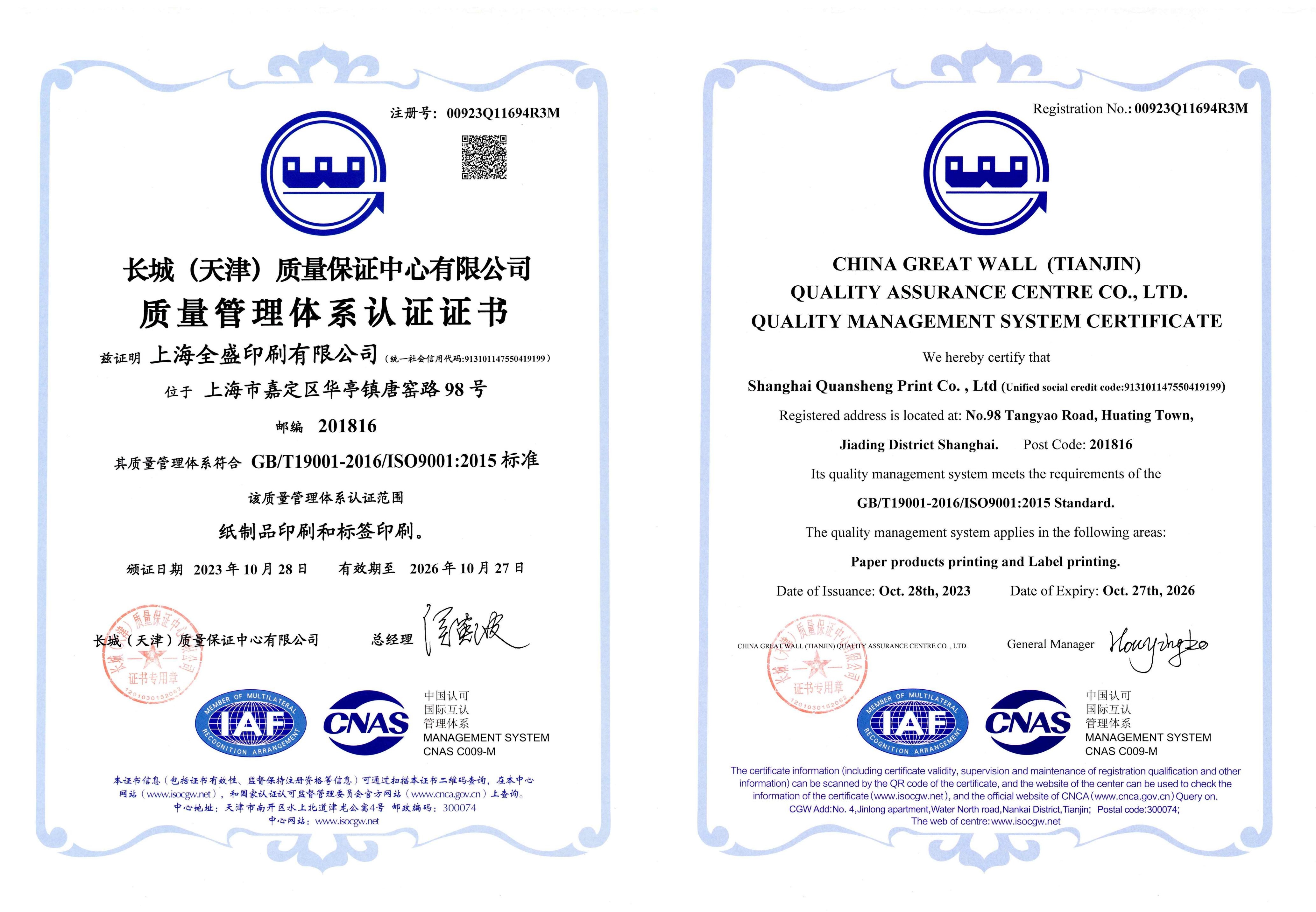 2023月10月,ld官方网站印刷获得ISO9001质量管理体系认证证书。ld官方网站集团结合企业实际情况,建立了一套科学、系统、全面的质量管理体系,有助于企业未来可持续发展。
