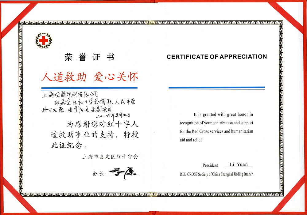 红十字会荣誉证书
